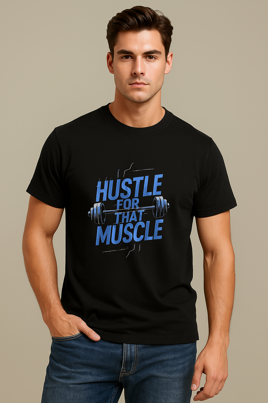 The Men’s Black Gym Motivation Quotes Classic Crew T-Shirt is made for go-getters, early risers, and anyone who turns ambition into action. Featuring the empowering quote Hustle for that Muscle in striking Blue typography, this tee fuels your mindset while keeping your style on point.