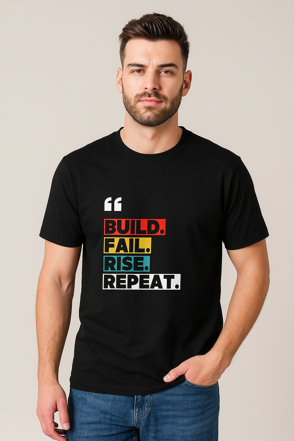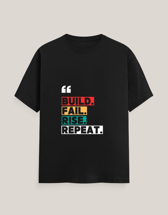 Design: Bold “Build. Fail. Rise. Repeat.” print – a mantra for startup warriors