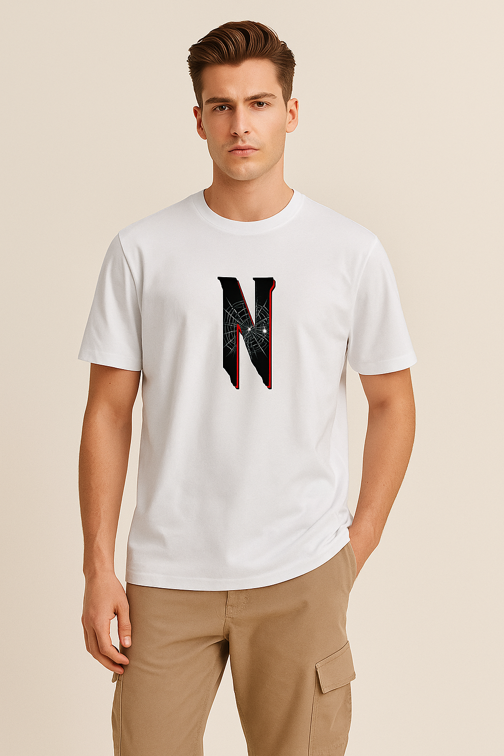 Men’s White Regular Fit “N” Alphabet T-Shirt – Bold Minimal Streetwear