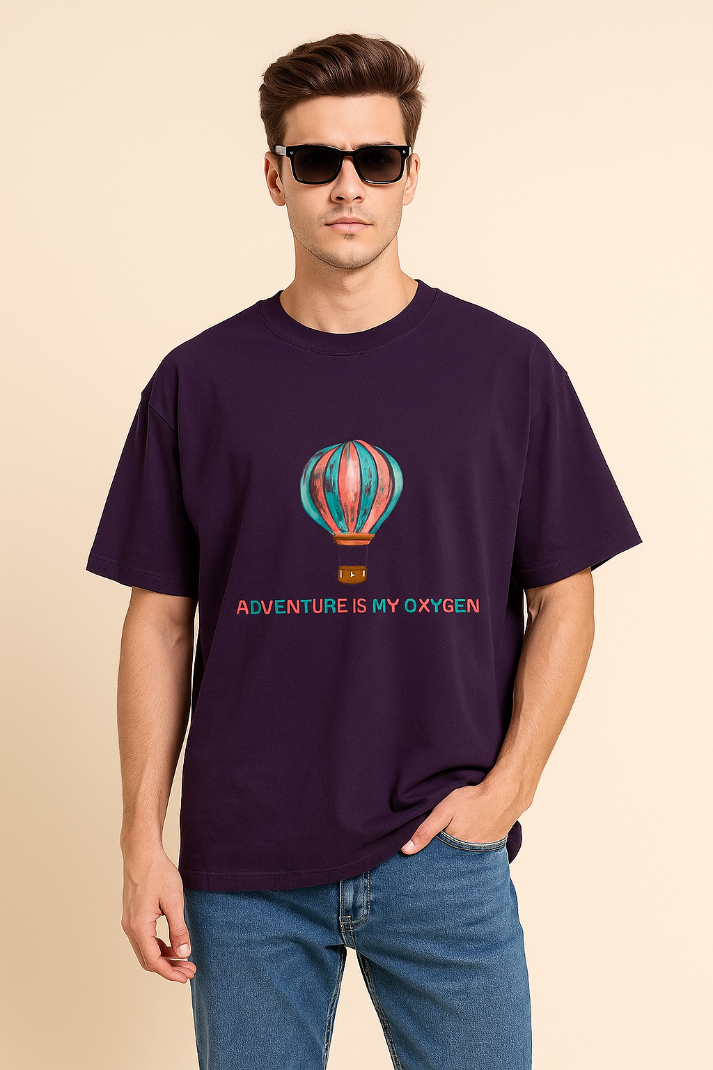 Set your spirit free and let your style take flight with the Unisex Adventure Lovers Oversized Classic T-Shirt. Designed with a bold hot air balloon graphic on a premium purple canvas, this oversized tee is made for dreamers, explorers, and everyone who believes that life is the greatest adventure.
