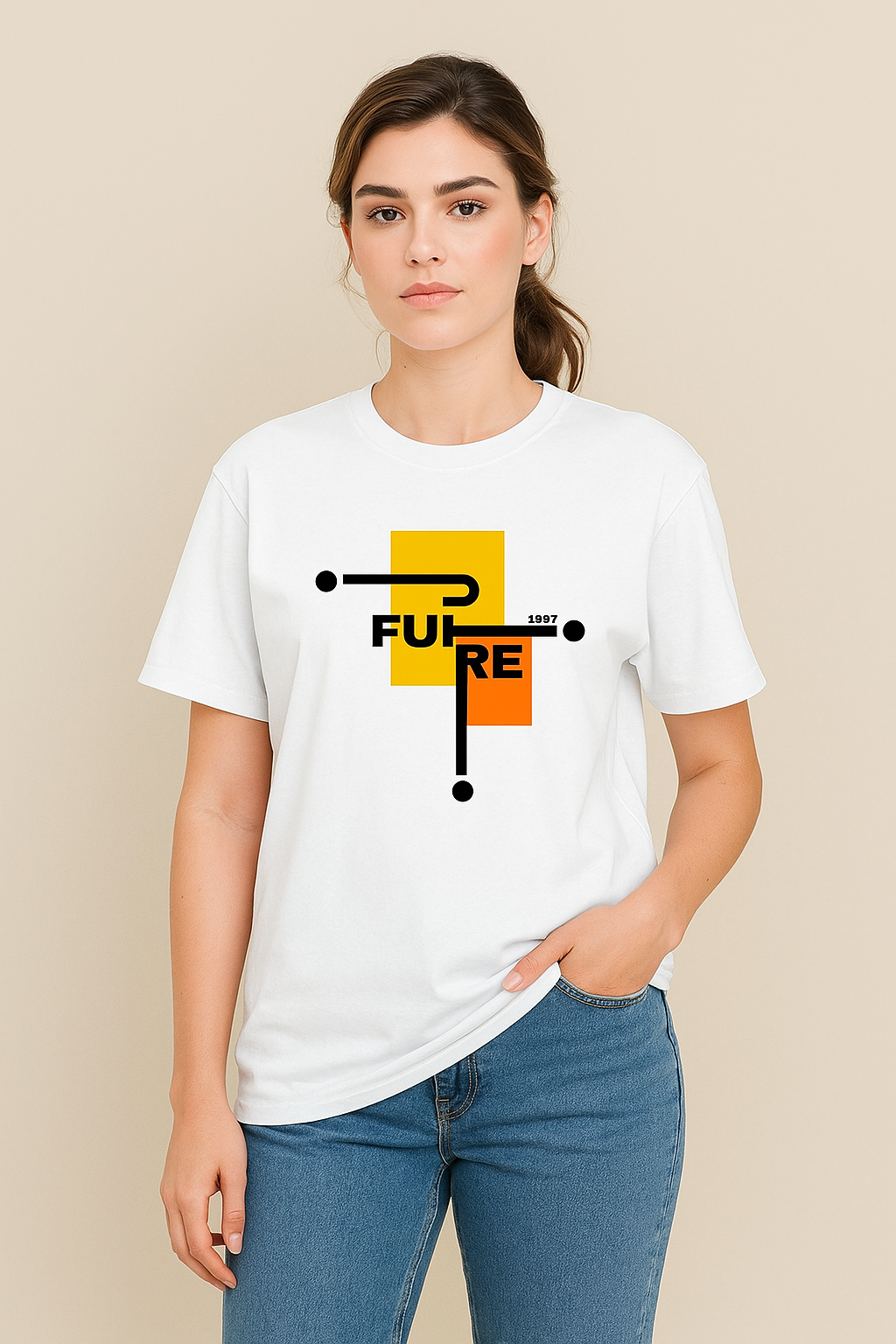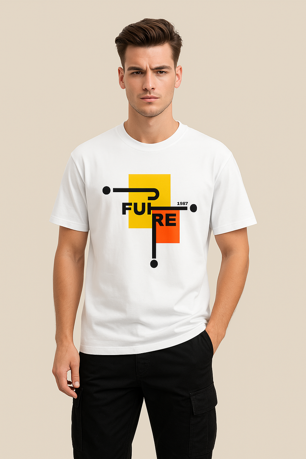 This bold Regular Fit tee features a striking geometric “FUTURE” graphic in vibrant yellow and orange blocks — a perfect mix of minimalism and streetwear edge. Designed for dreamers, doers, and believers in what’s next.