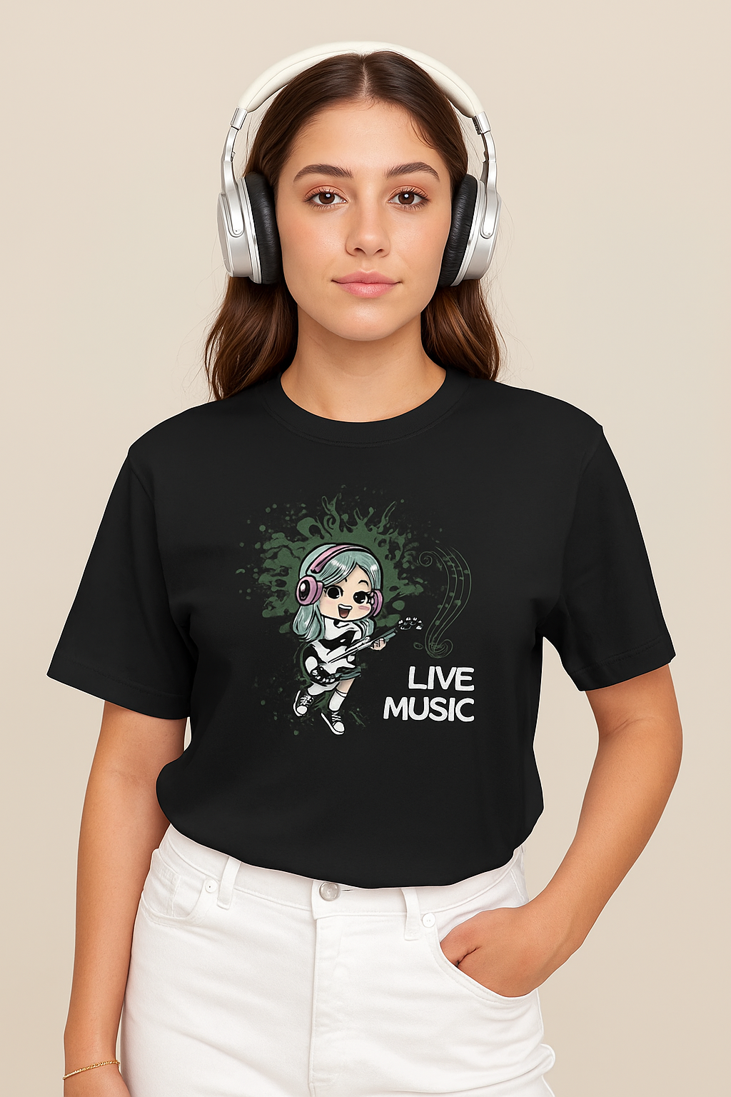 For the dreamers, the beat-chasers, and those who live in rhythm—this “Live Music” T-shirt is your anthem in wearable form. Featuring a vibrant neon jade and Pink soundwave design, glowing musical notes, and bold typography, this shirt radiates pure energy and passion. Whether you’re at a concert, jam session, or just vibing through life, this tee speaks your truth—music isn’t just something you listen to, it’s something you live.